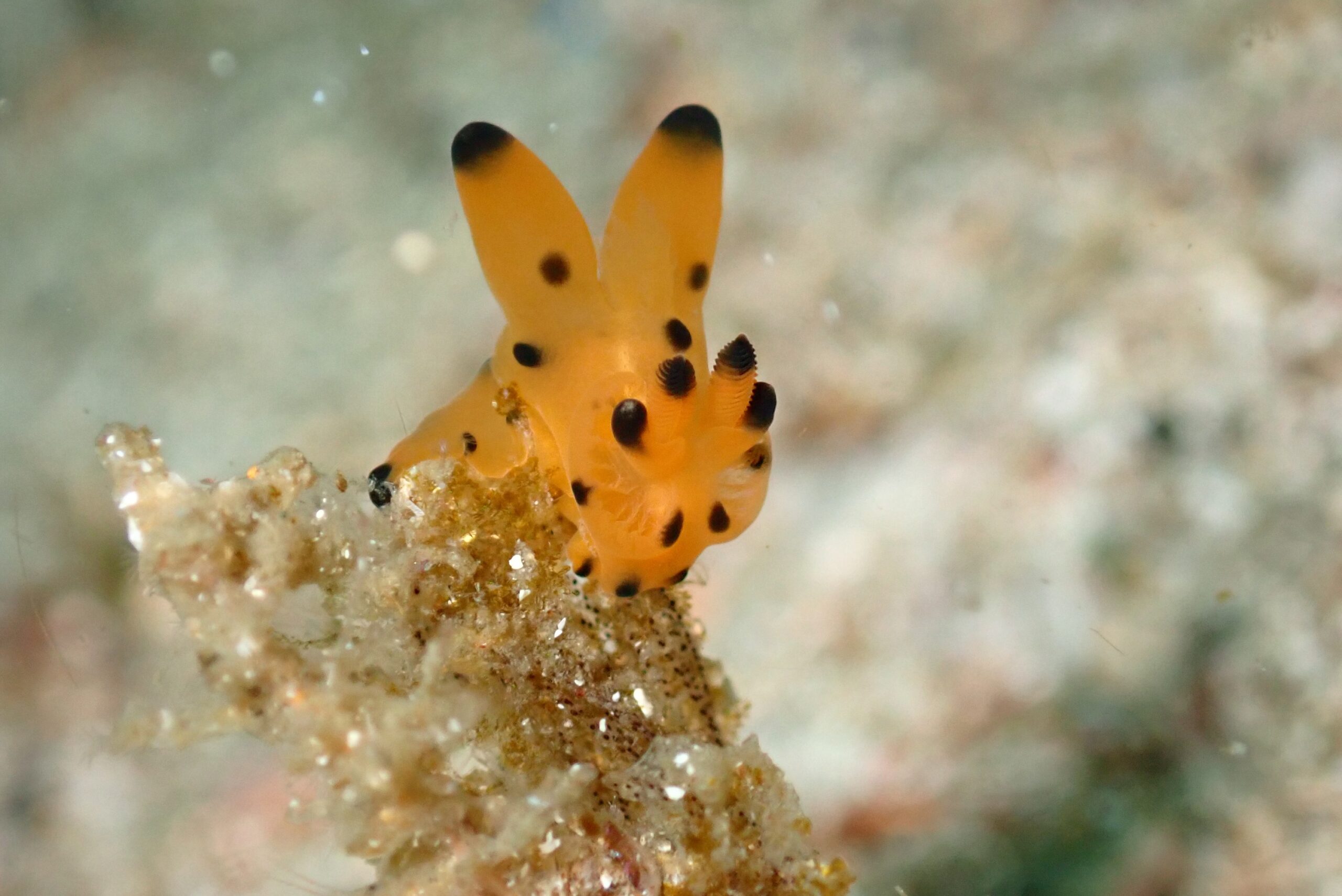 代わりに親戚のカンナツノザヤウミウシに出会いました。色合い的にはライチュウですかねぇ。