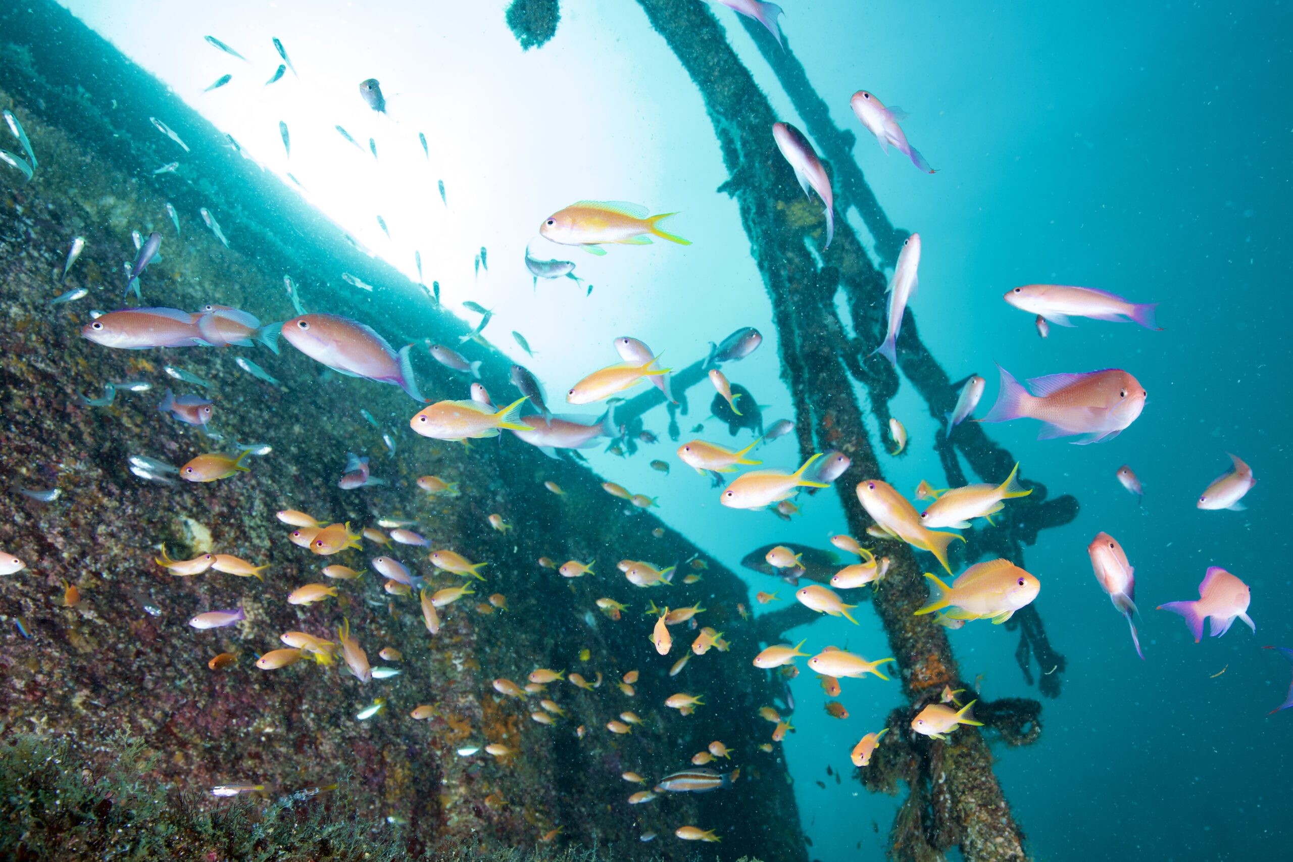 大瀬崎の湾内はマクロに寄りがちですが、漁礁にはカラフルなハナダイ達が群れ群れでした。
