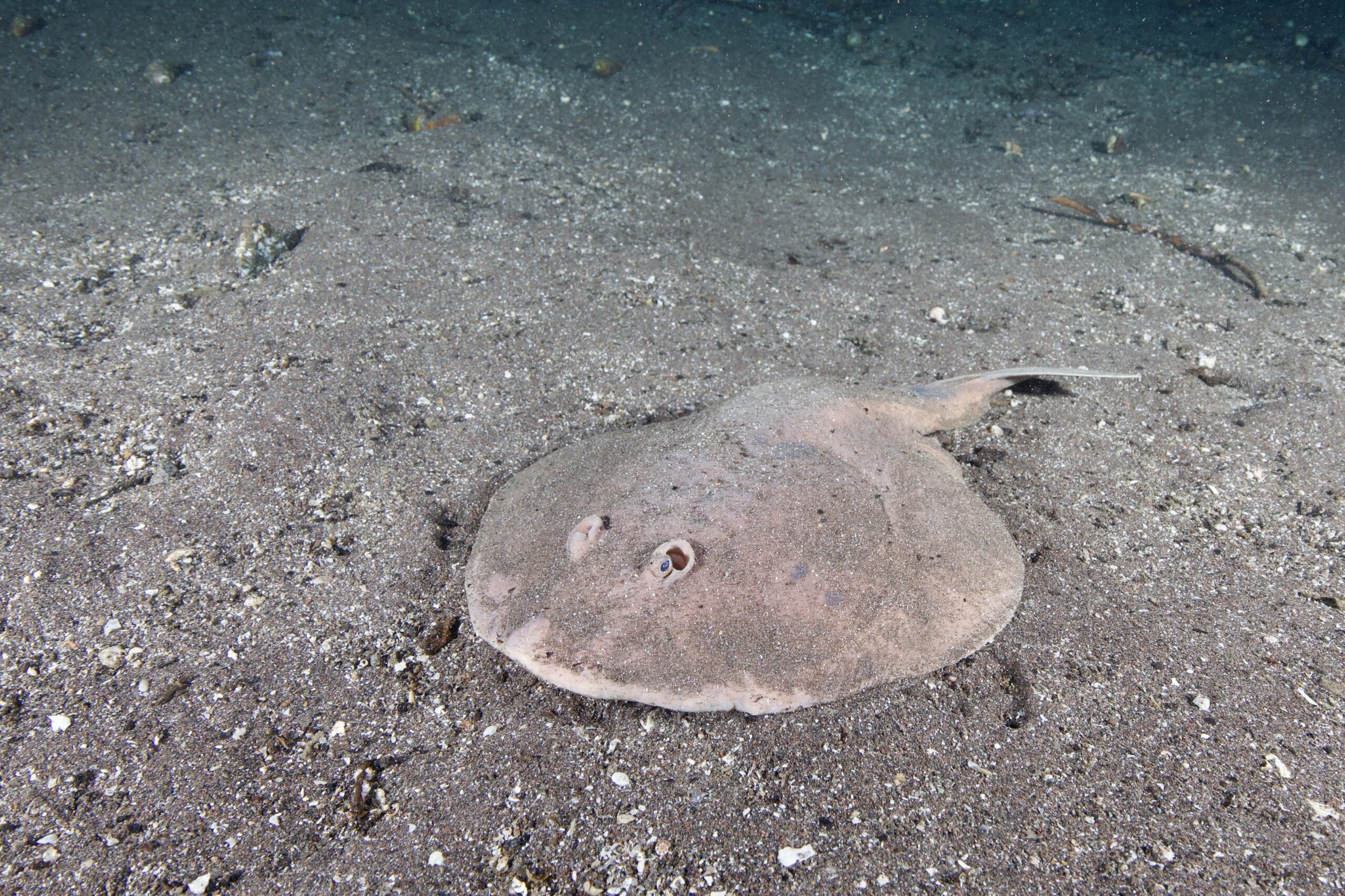 ナイトダイブでは、水底をシビレエイさんがモソモソしてました。
