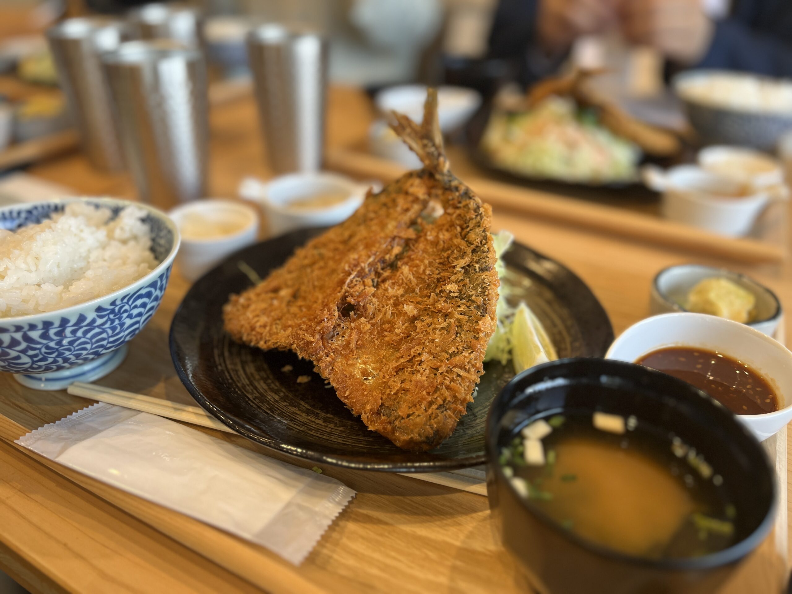 手のひらより大きいアジフライは、外はサクサク&中はフワフワ。
