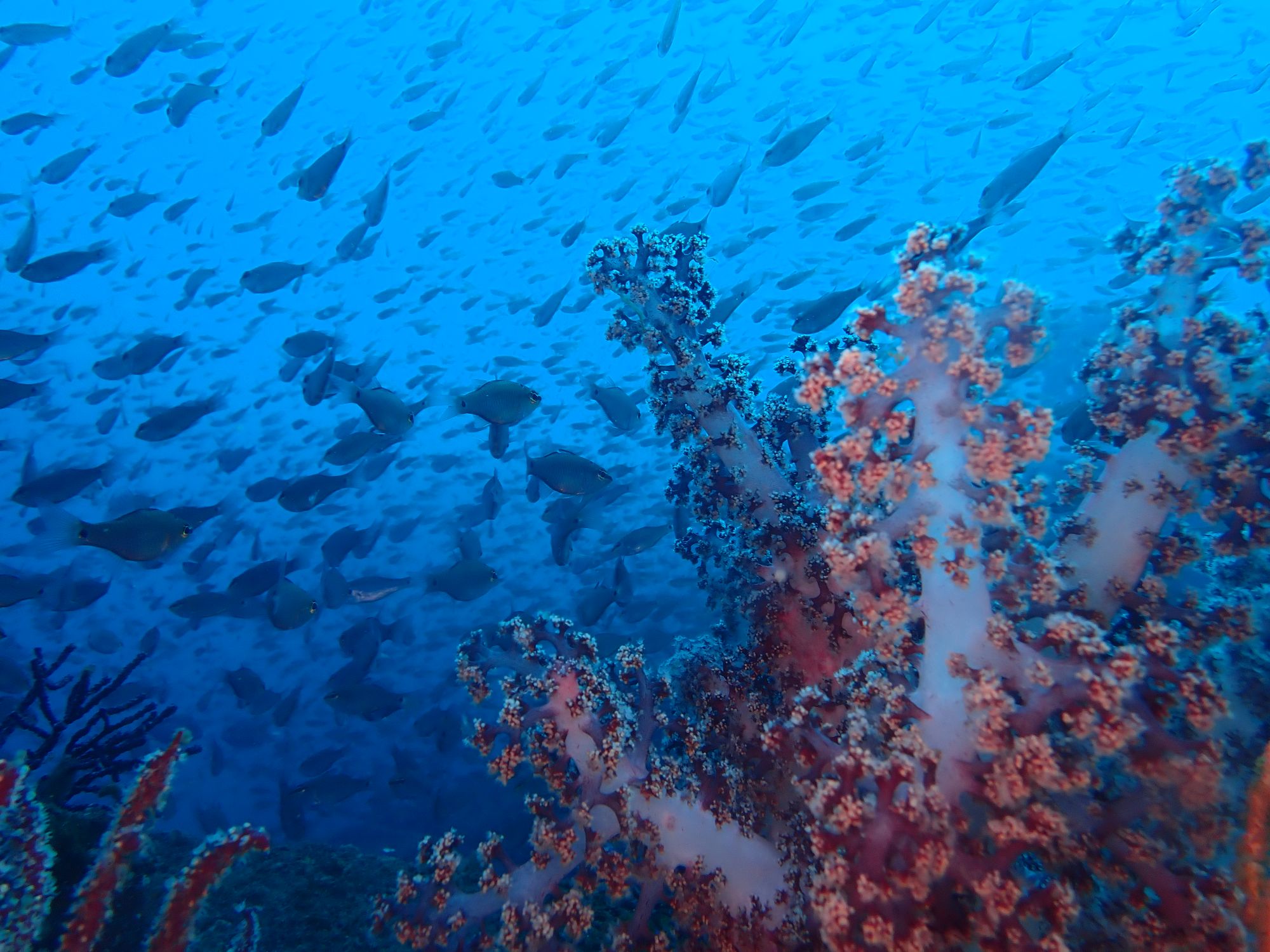 群れとサンゴ、沈船とサンゴ、色々な景色を楽しめました!